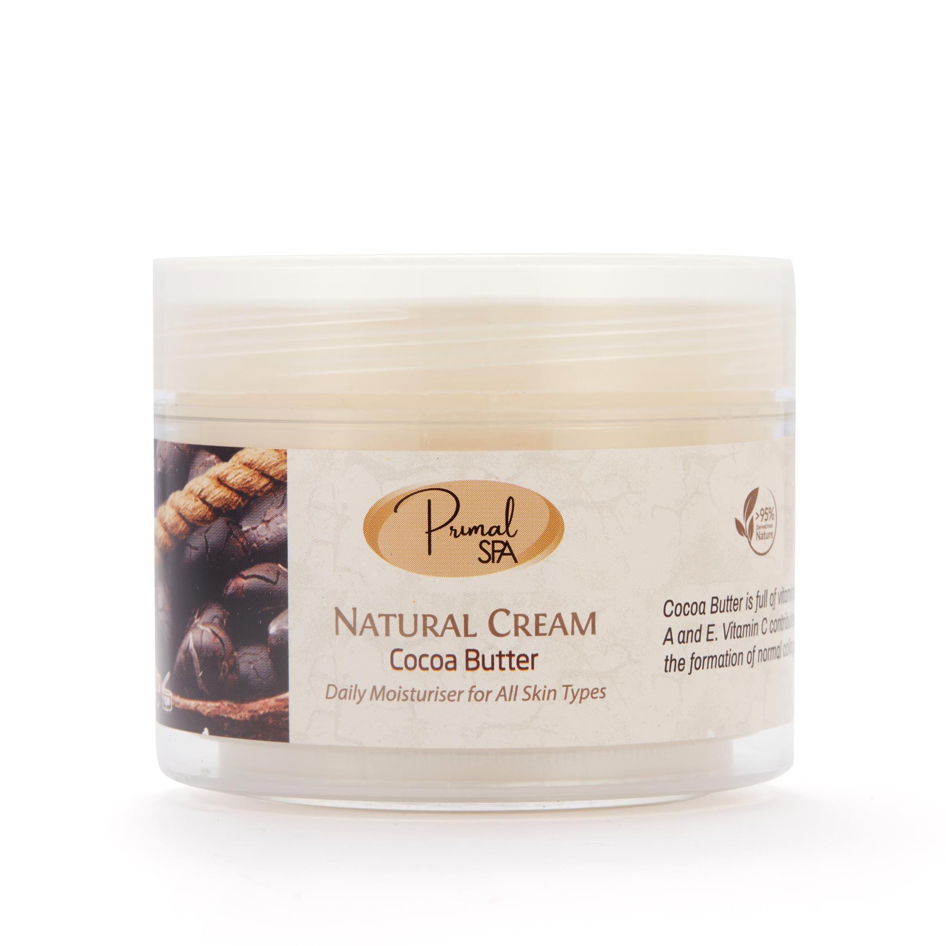 This cocoa butter face cream is made with 95% natural ingredients, including cocoa butter, which is full of vitamins C, A and E. Vitamin C contributes to the formation of normal collagen. Cocoa butter is also rich in fatty acids which restore moisture to skin. We've also included other fantastic natural ingredients renowned for their moisture-restoring properties, such as shea butter, olive oil and honey.