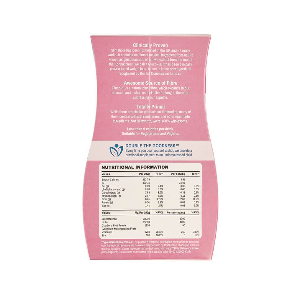 Slimshotz is loaded with vitamin C which contributes to the normal function of bones, teeth, cartilage, bones, skin and blood vessels and contributes to maintain the normal function of the immune system during and after extreme physical activity. It contributes to the normal function of the nervous system, to a normal energy yielding metabolism and contributes to the reduction of tiredness and fatigue.